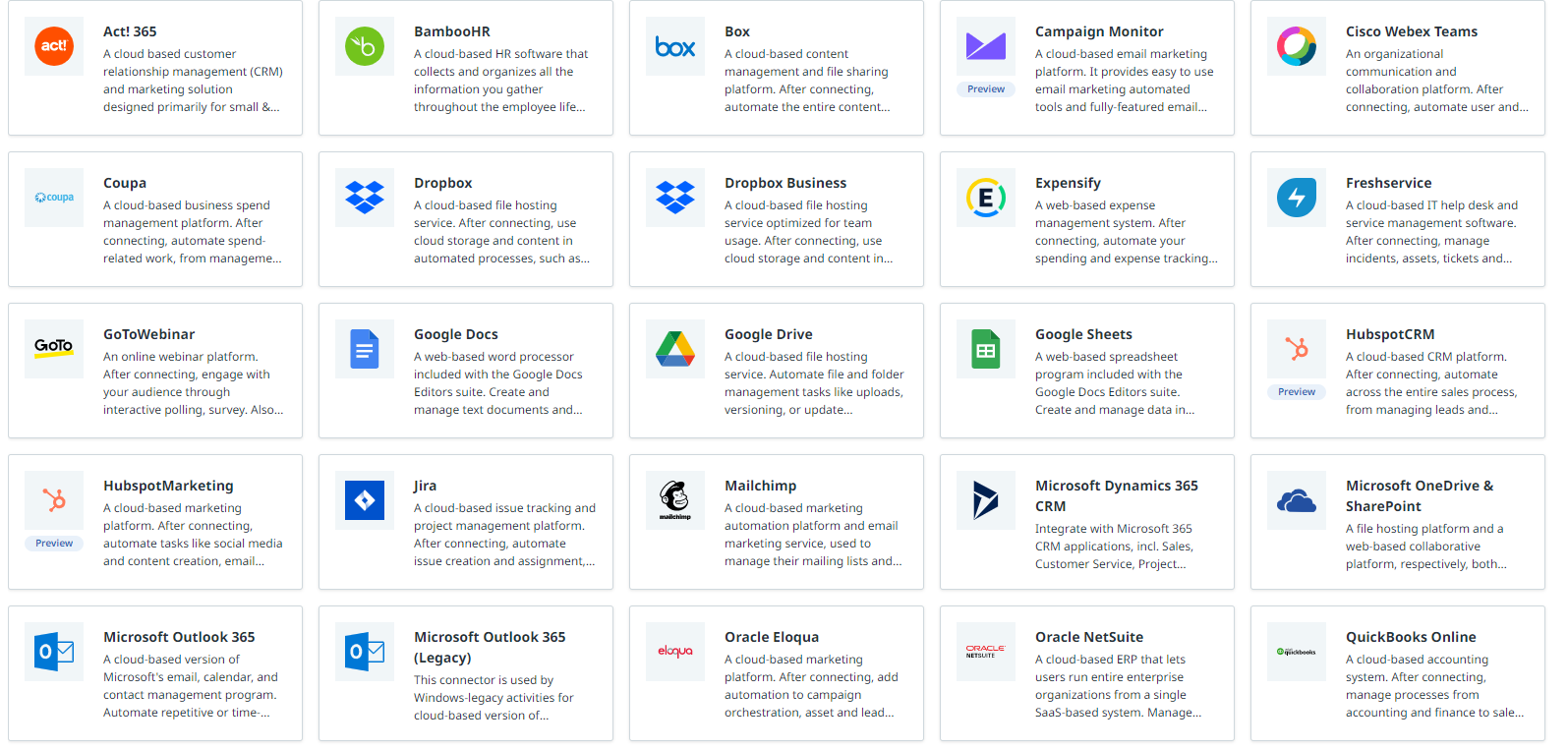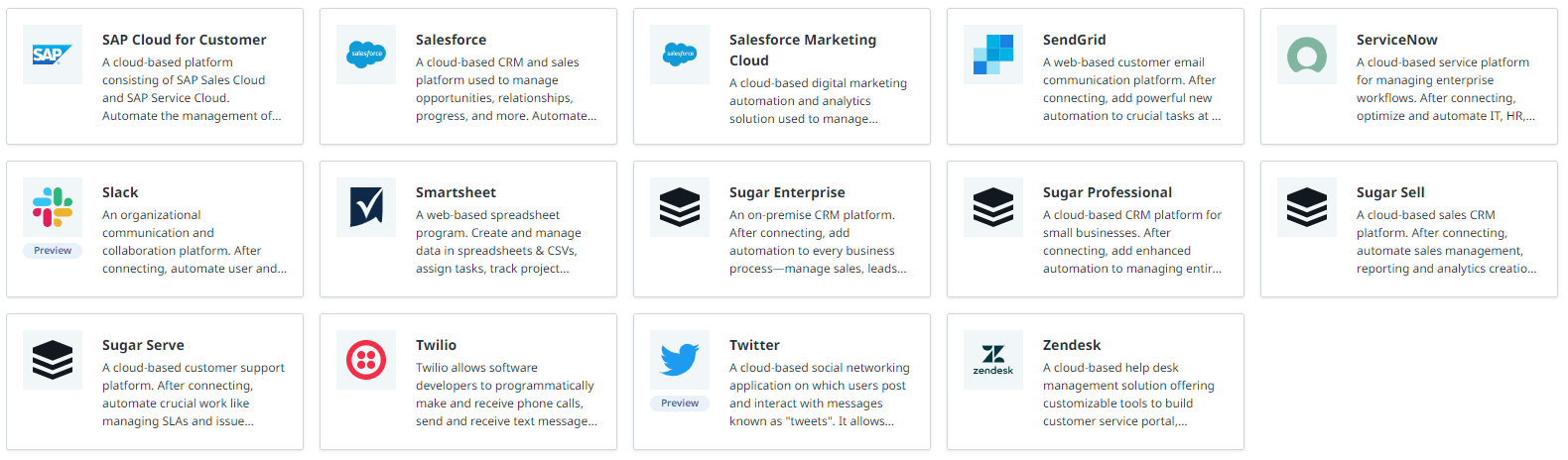 오케스트레이터의 Integration Service라는 메뉴에서 제공하는 연결 앱들이다.