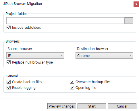 Replace null browser type은 Browser type없이 기본 브라우저로 열리게 되어 있는 경우도 브라우저를 바꿀 거냐이다.